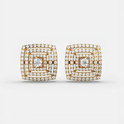 14K Solid Gold Earring / Round Maze Diamond Halo Cluster Setting Lab Grown Diamond Stud Earrings / Minimal Diamond Stud...