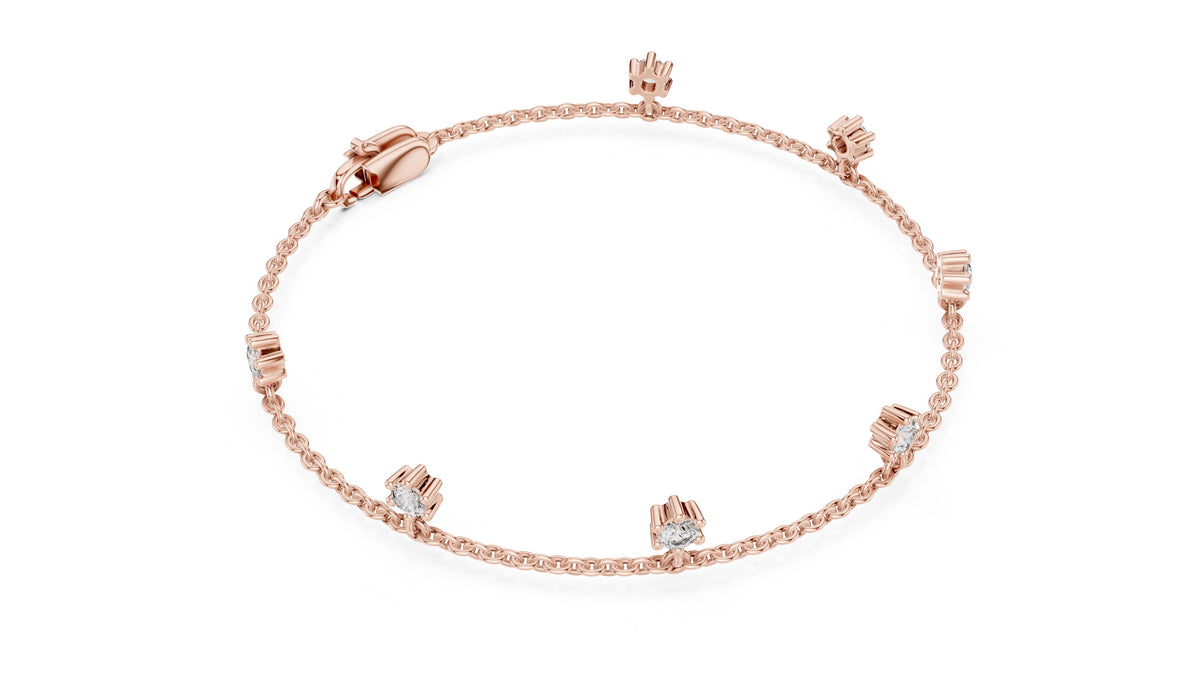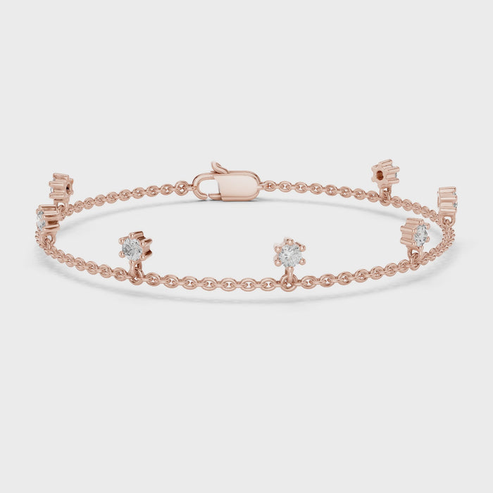 0.77 CT EF VS/SI Lab Grown Certified Round Cut Diamond Chain Wedding Bracelet For Women's 14K Rose Gold
