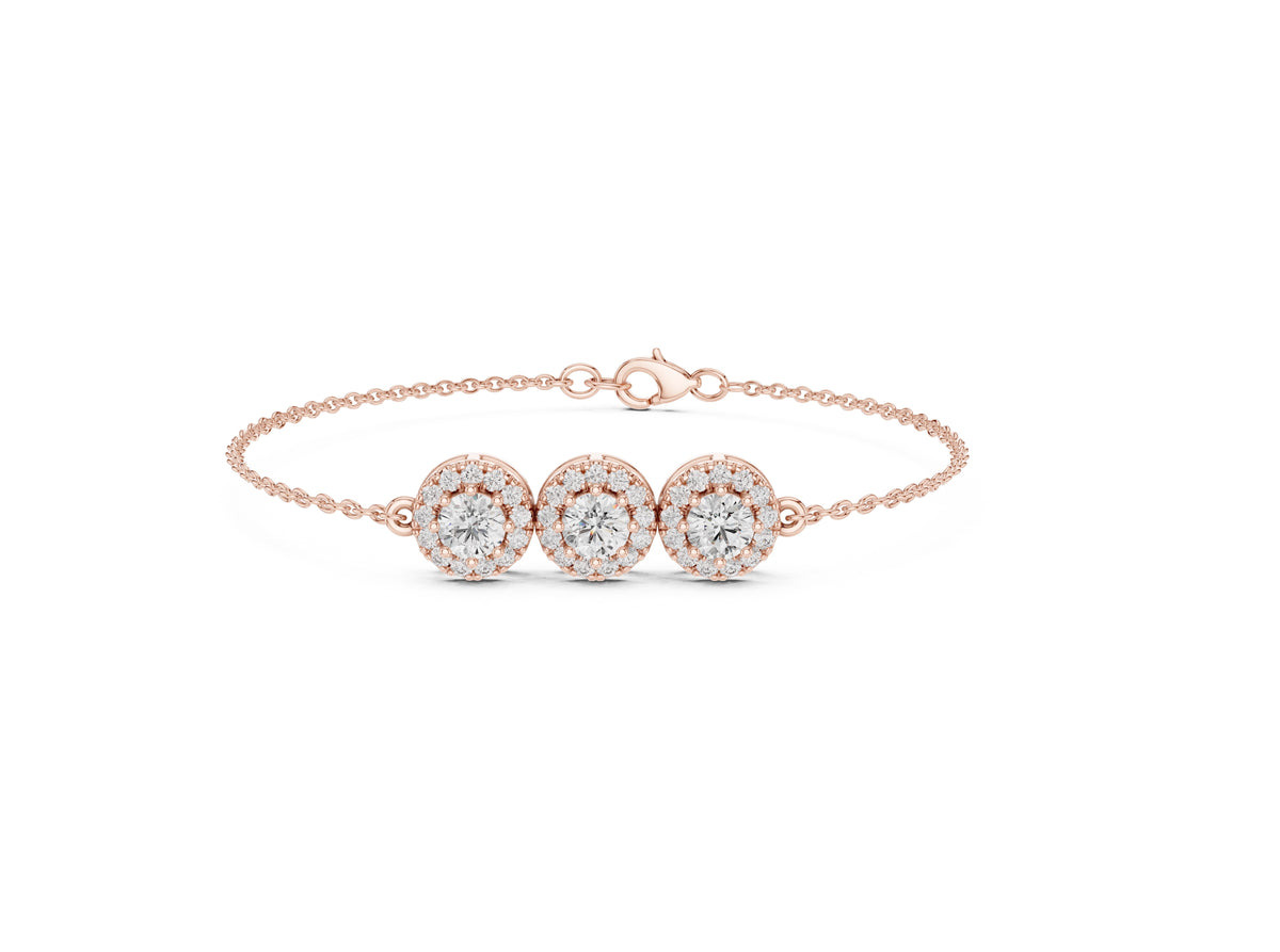 1.29CT EF VS/SI Lab Grown Certified Round Cut Diamond Chain Wedding Bracelet For Women's 14K Rose Gold