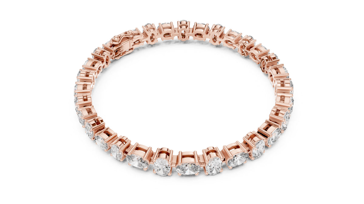 A stunning tennis bracelet is a masterpiece of fine craftsmanship and exquisite design, perfectly combining the beauty of a 7.71carat sparkle oval lab-grown diamond. The Round cut diamond is of exceptional quality, with brilliant cut facets that maximize its natural radiance and fire.