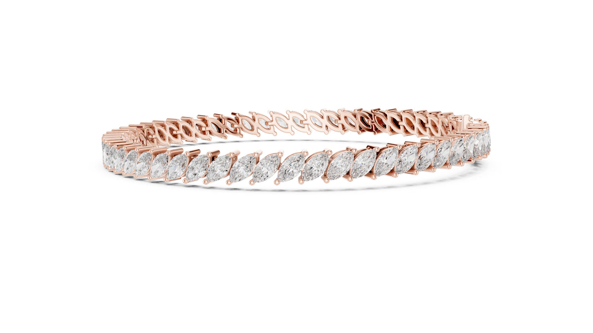 8.4 CT EF VS/SI Lab Grown Certified Marquise Cut Diamond Tennis Wedding Bracelet For Women's 14K Rose Gold