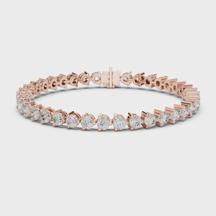 A stunning tennis bracelet is a masterpiece of fine craftsmanship and exquisite design, perfectly combining the beauty of a 7.98 carat sparkle Round lab-grown diamond. The Round cut diamond is of exceptional quality, with brilliant cut facets that maximize its natural radiance and fire.